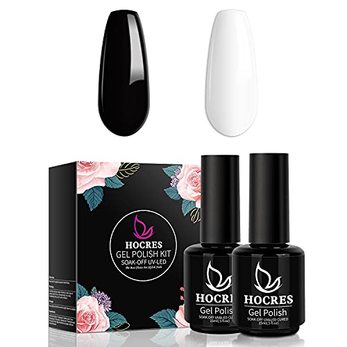 HOCRES UV LED Smalto per unghie Gel Smalto per unghie Nero e Bianco Colori Black White Smalto per unghie Gel Set-2x15ml