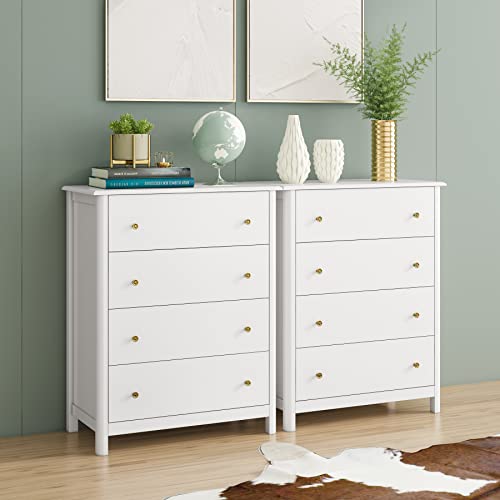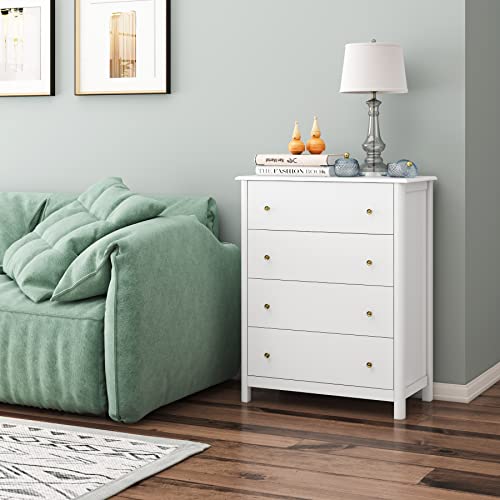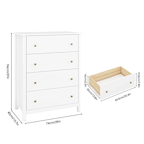 HOCSOK Cassettiera Camera Letto, Cassettiera 4 Cassetti in Legno, Comodino con Cassetti Moderno, adatto per Camera da Letto, Soggiorno, Studia e Ufficio, MDF, Bianco, 74x40x94cm