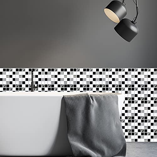 Hode Adesivo per Piastrelle Mosaico in Vinile Bianco e Nero Autoadesivo Impermeabile 44X400cm con Motivo a Fulmini in Marmo Pellicola Adesiva Adatta per Piastrelle da Bagno e Cucina