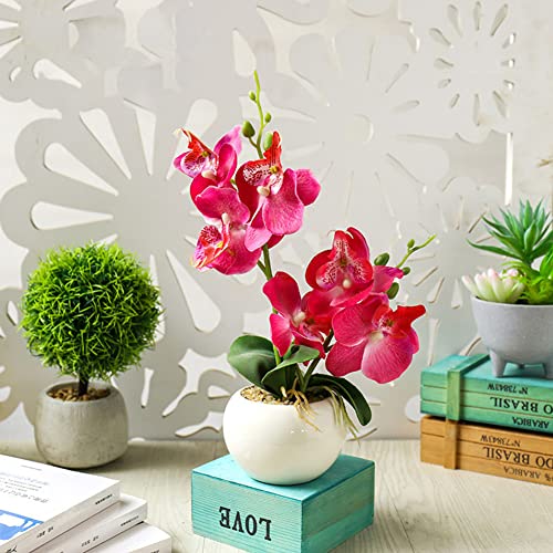 Hodeffior Farfalla artificiale orchidea bonsai in vaso con vaso piante finte per la decorazione della casa camera da letto rosa rossa