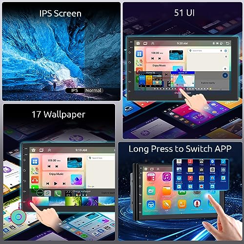 【Sistema Android e Schermo Diviso IPS 7 Pollici】Godetevi il sistema operativo più recente e avanzato per il vostro dispositivo auto, con prestazioni veloci, interfaccia fluida e accesso a milioni di app. 51 interfacce utente tra cui scegliere. Personalizzate la vostra pagina iniziale. È possibile utilizzare due app contemporaneamente sullo schermo del dispositivo