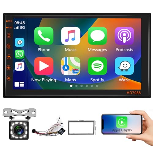 Hodozzy Carplay Android Autoradio 2 Din Con GPS 7 Pollice Touchcreen Auroradio mit Bluetooth/17 Temi/WiFi/USB/AUX/Mirror Link/RDS/FM/SWC für IOS/Android+ISO Cavo adattatore+Telecamera Retromarcia