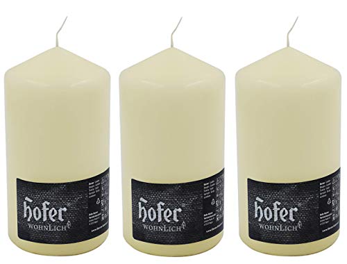 Hofer Candele Avorio a Colonna - 8 x 13 cm - Set di 3 Candele Decorative Cilindriche - Colore Avorio - Lunga Durata di 48 Ore - Cera Antigoccia - Non Profumate - Qualità RAL