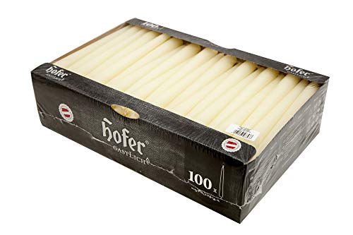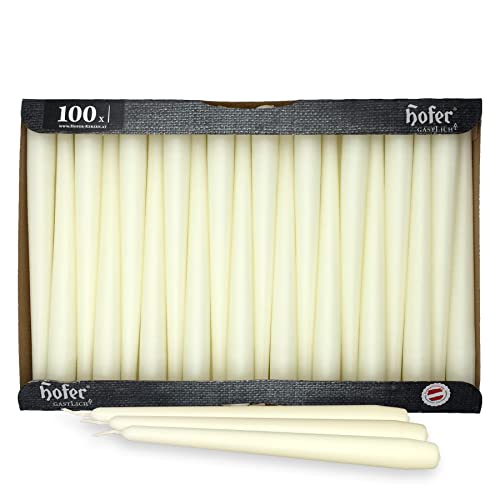 Hofer Candele per Candelabri - 23 x 250 mm - Colore Avorio - Set di 100 Candele Coniche Lunghe - Lunga Durata di 7 Ore - Non Profumate - Qualità RAL