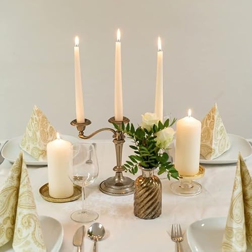 Dimensioni di ciascuna candela conica: Diametro: 23 mm, Lunghezza: 250 mm. Colore: Avorio. Materiale: Cera di paraffina, stoppino in puro cotone.
