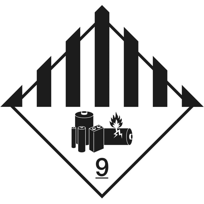 Classe 9 (sottoclasse 9A) per batterie al litio. Dati tecnici Tipo di prodotto Contrassegno di merce pericolosa Tipo di fornitura Pezzi Lunghezza, mm 100 Altezza, mm 100 Materiale Pellicola in PVC Contenuto 1 Tipo di fissaggio autoadesivo
