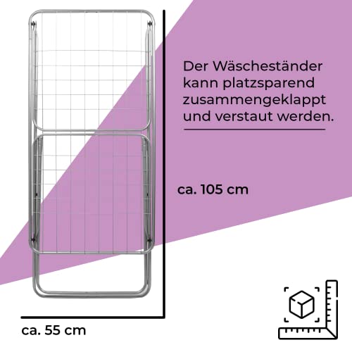 Superficie di asciugatura XXL: grazie al suo pratico meccanismo pieghevole abbiamo potuto realizzare una lunghezza di asciugatura di 18 metri nella nostra asciugatrice - spazio sufficiente per i vostri vestiti o asciugamani.