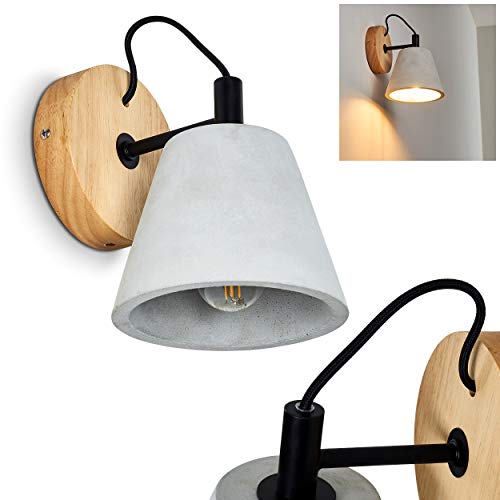 HOFSTEIN Lampada da parete Halltorp, lampada da parete in legno/calcestruzzo/metallo nei colori marrone/taupe/nero, 1 luce, 1 attacco E14, spot da parete dal design retrò/vintage, senza lampadina/e