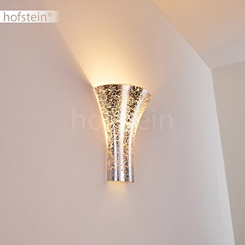 Hofstein Lampada da parete Nerola in metallo/vetro in argento, lampada da parete moderna con effetto luce sulla parete, 1 x E27, lampada da parete per interni con effetto luce, senza lampadina/e