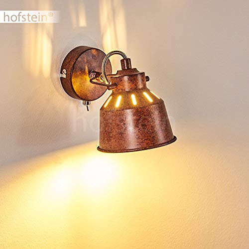 HOFSTEIN Lampada da parete Safari, lampada da parete regolabile in metallo in marrone ruggine/bianco, 1 luce, 1 attacco E14, spot da parete in design retro/vintage, senza lampadina/e