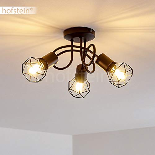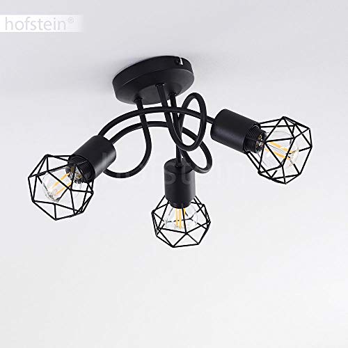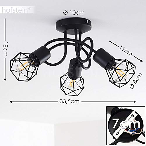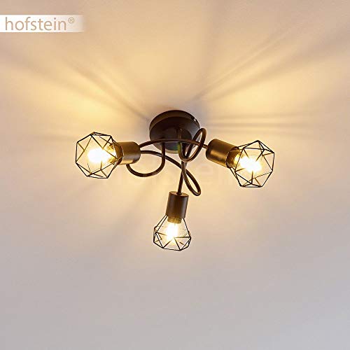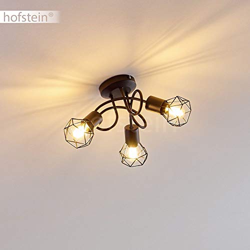 HOFSTEIN Lampada a soffitto Baripada, lampada a soffitto in metallo in nero, 3 luci, 3 x attacco E14, spot in design retrò/vintage in look reticolo ed effetto luce sul soffitto, senza lampadina/e