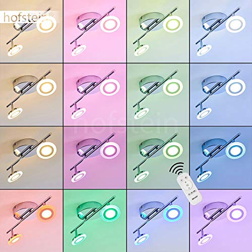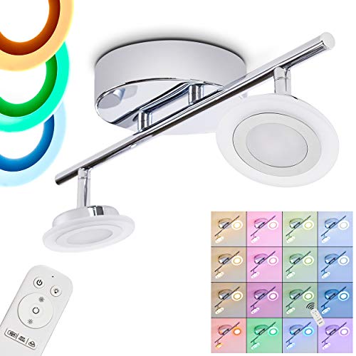 Hofstein Lampada da soffitto LED Lucy, lampada da soffitto in metallo dimmerabile in cromo con teste di lampada regolabili, 2 x 5 watt, 700 lumen totali, 3000 K, con cambiacolori e telecomando