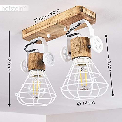 Hofstein Lampada a soffitto Nifun, lampada a soffitto in metallo/legno in bianco/marrone, 2 luci, con faretti orientabili, 2 x attacco E27, spot dal design retrò/vintage, senza lampadina/e