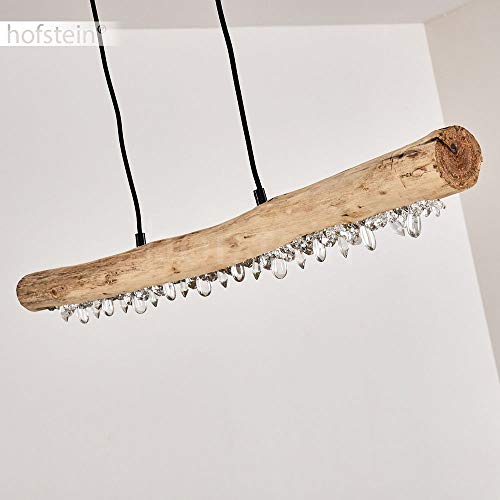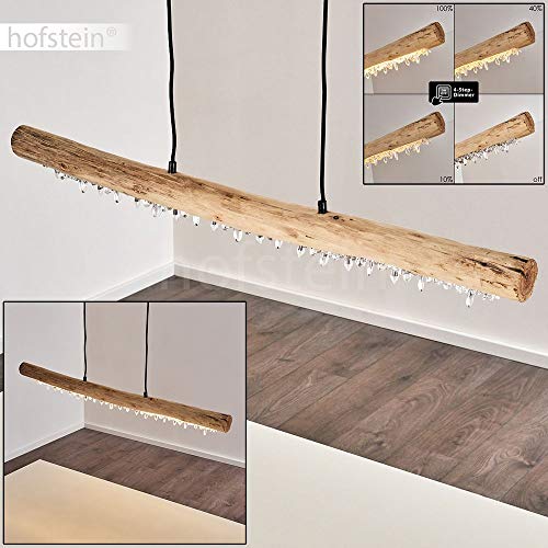 Hofstein Lampada a sospensione LED dimmerabile Calumet, in metallo/legno e cristallo in nickel opaco, 1 luce, 15 Watt, 1500 Lumen, 3000 Kelvin. Dimmerabile in 4 fasi. Altezza massima 150 cm
