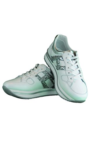 Hogan Junior Sneakers H222 BASSAIN Pelle Bianca E Argento HXC2220T541G9N Argento 35