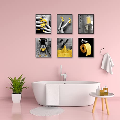 HOGEBIG Decorazione da parete alla moda per bagno, stampa Glam Glitter tessuto tela poster foto Glod bagno opere d'arte in bianco e nero moderno donna divertente bagno (28 x 35,6 cm senza cornici)