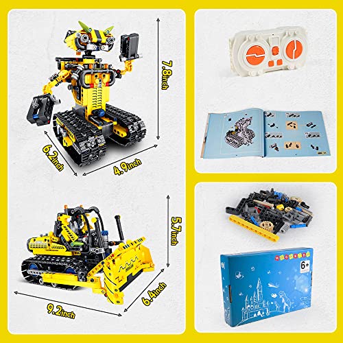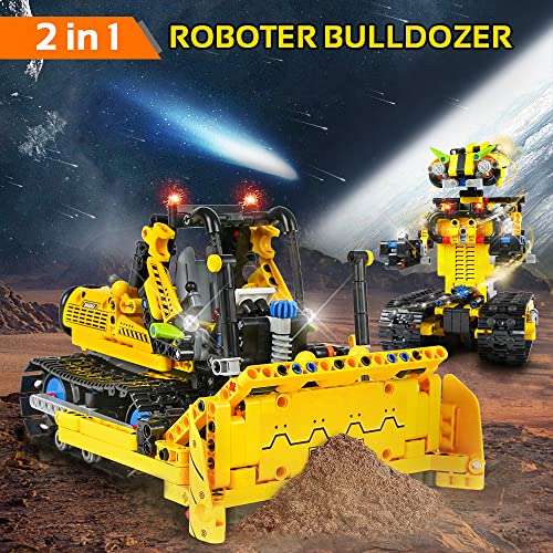 HOGOKIDS Tecnica telecomandata robot per bambini - 730 pezzi Bulldozer 2 in 1 con app giocattolo da costruzione programmabile | regalo di compleanno per 8 9 10 11 12+ anni ragazzi ragazze
