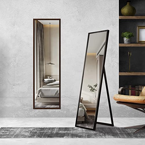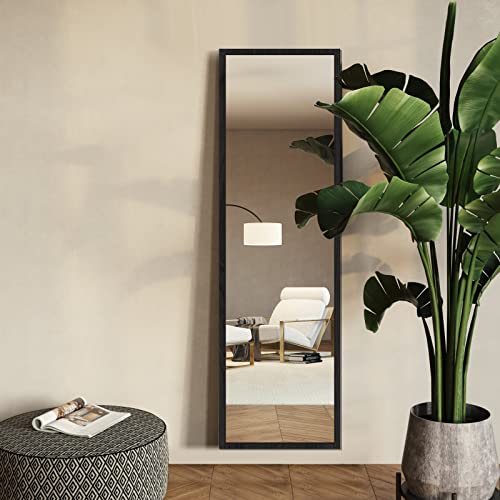 HOHAOO Specchio a tutta lunghezza, specchio da terra autoportante da appendere o appoggiato, grande specchio con cornice nera per cameretta, camera da letto, soggiorno