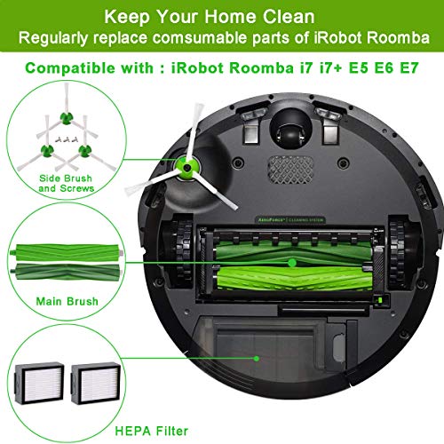 HoHome Kit di Ricambi Compatibile per iRobot Roomba E5 E6 E7 i7 i7+ i8 i8+ j7 j7+ i6 i6+ i4 i4+ i3 i3+ Aspirapolvere, Accessori Spazzole Filtri 11in 1