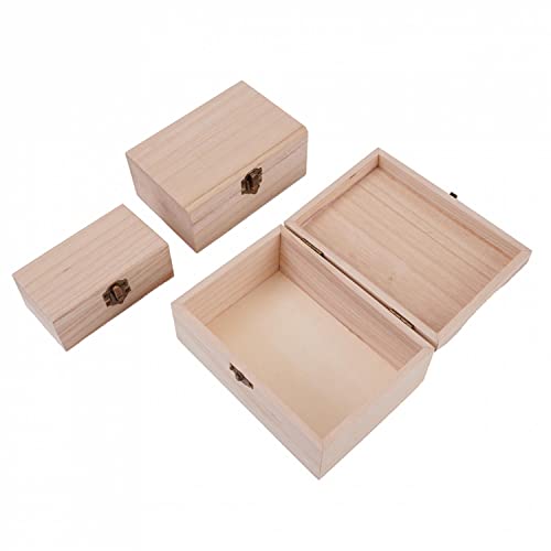 HOHOVYVY Set di 3 scatole di legno con coperchio, quadrate, ideali per conservare con chiusura in metallo, cassapanca in legno, scatola del tesoro, portagioie