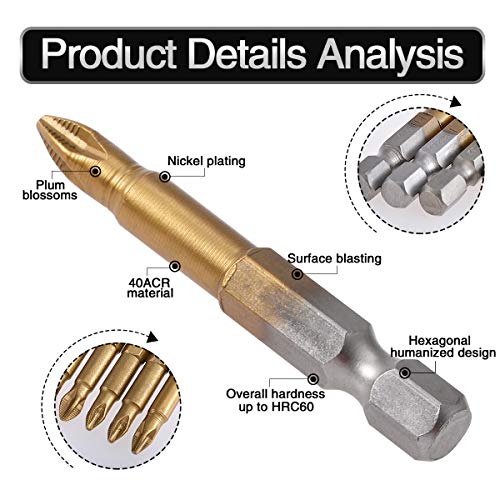 Le lame hanno speciali scanalature antiscivolo per una migliore presa sul viso della vite. Accessorio per utensili elettrici di livello professionale per chiusure a testa a croce più grandi.