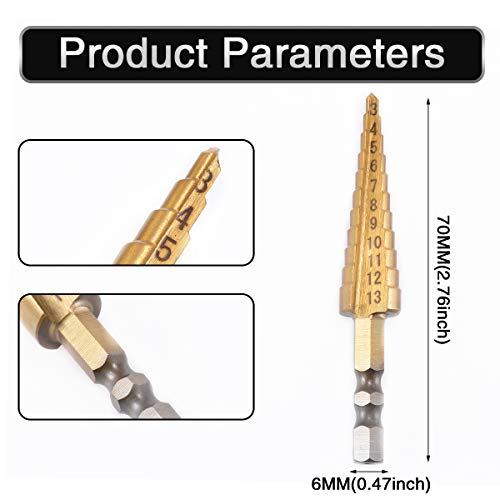 HOHXEN 1/10,2 cm hex shank titanio passo trapano in acciaio ad alta velocità 11 Steps hex shank 3 - 13 mm