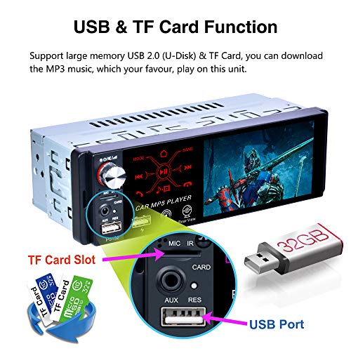 Hoidokly Autoradio Bluetooth 1 Din Universale 4,1'' HD Touch Screen MP5 Player Autoradio Auto Stereo Supporto Bluetooth/2 USB/TF/AUX/FM/AM/RDS/Microfono (con Fotocamera+Telecomando del Volante)