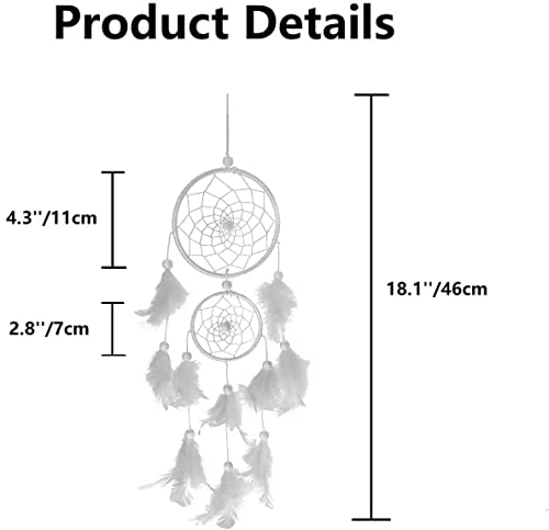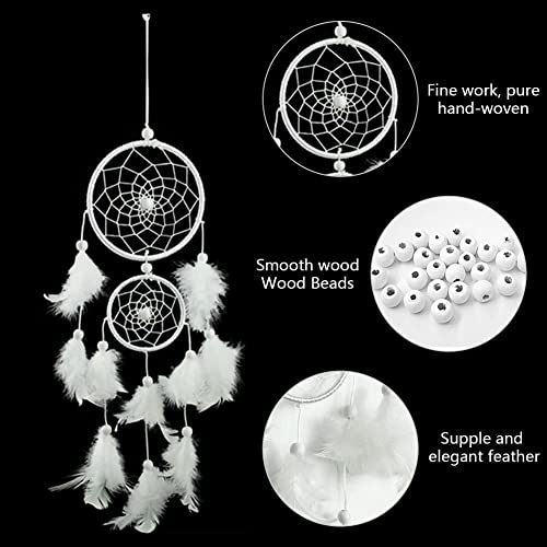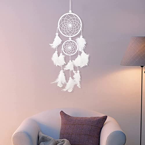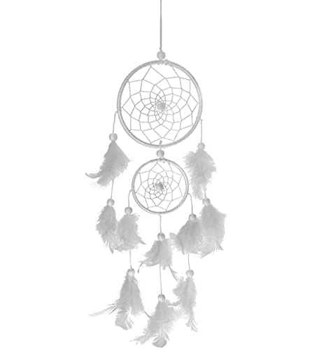 HOIER Acchiappasogni, realizzato a mano, con piume, decorazione della Boemia, per camera da letto, matrimonio, decorazione da parete per ragazze, regalo per bambini, bianco
