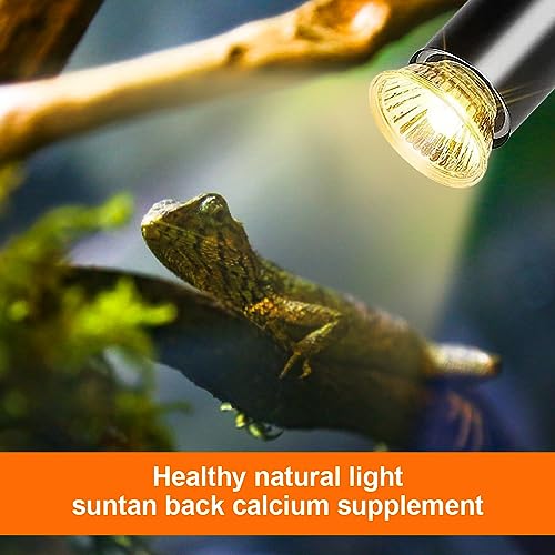⭐【Lampada Riscaldante UVA UVB】 La lampada riscaldante tartarughe viene fornito con due lampadine da 50 W per soddisfare le esigenze del tuo animale domestico. La nostra lampada UVA e UVB per rettili simula la luce solare per promuovere una crescita ossea sana nei rettili, la luce UVB aiuta anche la sintesi delle vitamine, l'assorbimento del calcio e previene le malattie causate da una luce insufficiente. Porta il sole a casa, previeni le malattie e promuovi la crescita.