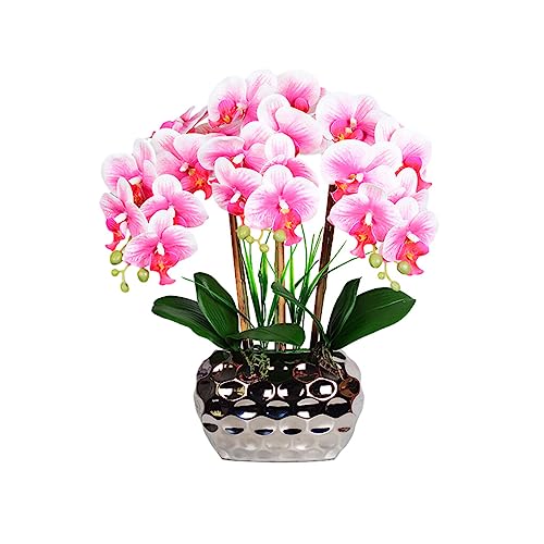 HOJIOESRD Grande bonsai di orchidea artificiale con vaso realistico Phalaenopsis Real Touch Composizioni di piante finte Ornamenti per soggiorno, Bianco Viola