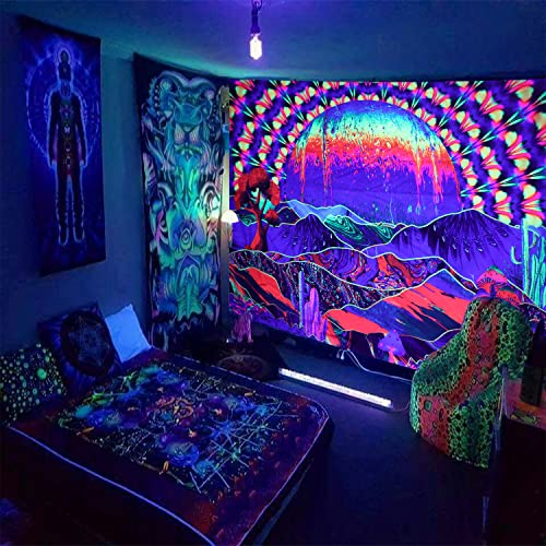 HOLAVIDA Arazzo Pianeta Trippy UV Reattivo Luce Nera Universale e Psichedelico di Montagna Decorazione per Dormitorio Camera da Letto (150cm×130cm)
