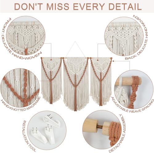 Qualità affidabile: Al fine di la qualità e il tempo di utilizzo dell'attaccatura a parete intrecciata, usiamo legno di pino naturale per l'asta di legno, ed è un robusto legno massello e la sua forza di supporto sarà migliore. La corda di pizzo che usiamo è 100% corda di cotone naturale, non c'è odore chimico sgradevole, è salutare ed è di alta qualità. Puoi decorarlo ovunque con fiducia