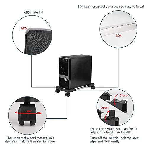 CPU Holder Cart,Regolabile del Supporto della CPU Mobile,con rotelle Bloccabili,Dimensione Regolabile,per la maggior parte delle case di PC o computer sotto la scrivania