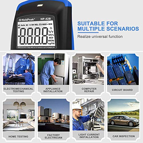 HoldPeak Multimetro Digitale HP-42B Tester Digitale, 6000 Conteggi TRMS Auto-Ranging, Misurazione di Tensione/Corrente CC/CA, Resistenza, Diodo, continuità (Portatile)