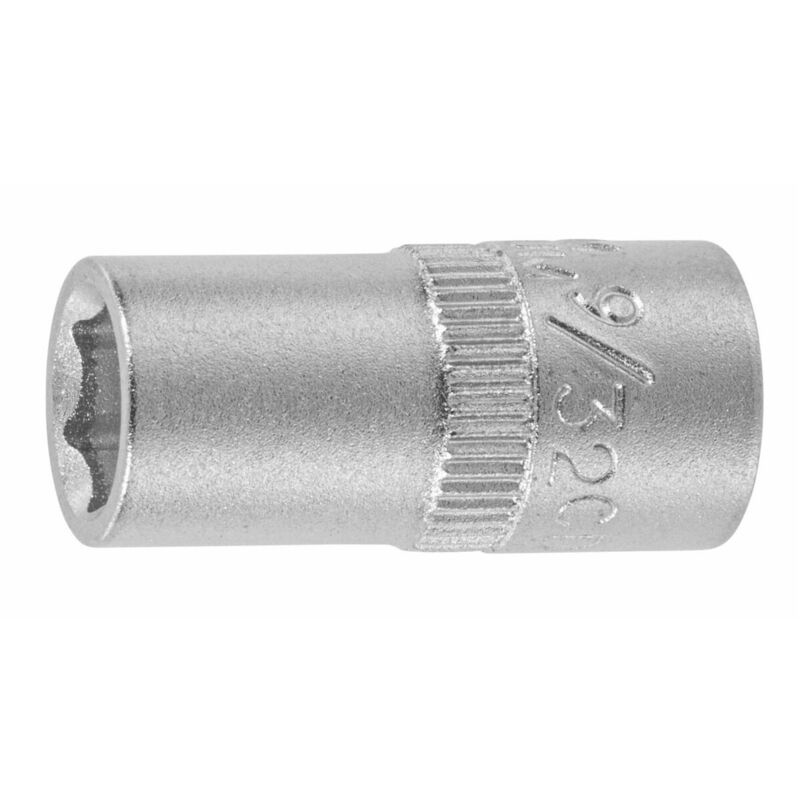Forgiate in acciaio di grande qualità, svasate internamente per una rapida presa sulle teste delle viti. Materiale: Acciaio al cromo-vanadio, esecuzione cromata. Dati tecnici Quadro di manovra femmina Zoll 1/4 Tipo di prodotto Bussola Lunghezza, mm 24,8 Apertura, Zoll 9/32 ⌀ Lato uscita, mm 11