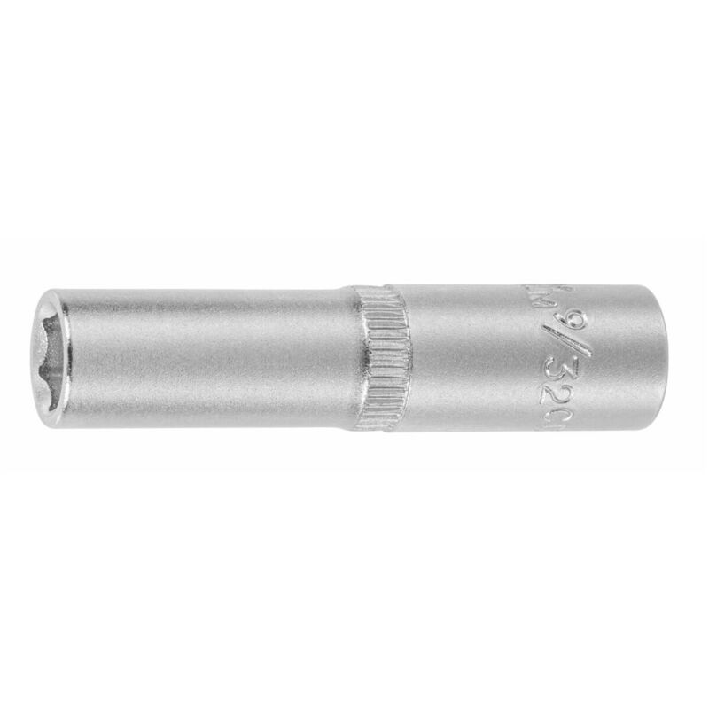 Forgiate in acciaio di grande qualità, svasate internamente per una rapida presa sulle teste delle viti. Materiale: Acciaio al cromo-vanadio, esecuzione cromata. Dati tecnici Tipo di prodotto Bussola Quadro di manovra femmina Zoll 1/4 Lunghezza, mm 50 Apertura, Zoll 9/32 ⌀ Lato uscita, mm 11