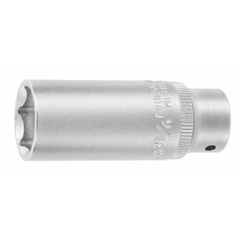 Forgiate in acciaio di grande qualità, svasate internamente per una rapida presa sulle teste delle viti. Materiale: Acciaio al cromo-vanadio, esecuzione cromata. Dati tecnici Tipo di prodotto Bussola Quadro di manovra femmina Zoll 1/4 Lunghezza, mm 50 Apertura, Zoll 9/16 ⌀ Lato uscita, mm 19,6