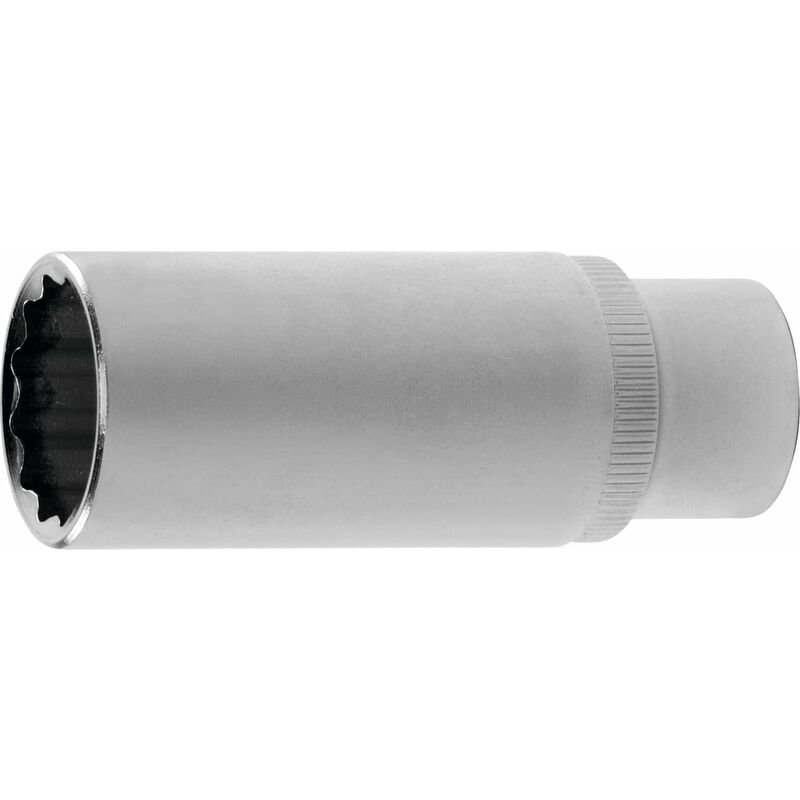 Forgiate in acciaio di grande qualità, svasate internamente per una rapida presa sulle teste delle viti. Materiale: Acciaio al cromo-vanadio, esecuzione cromata. Dati tecnici Tipo di prodotto Bussola Quadro di manovra femmina Zoll 3/8 Lunghezza, mm 64 Apertura, Zoll 5/8 ⌀ Lato uscita, mm 22