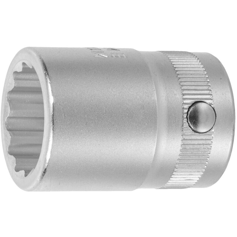 Forgiate in acciaio di grande qualità, svasate internamente per una rapida presa sulle teste delle viti. Aperture a tolleranze ridotte. Quadri femmina con foro di tenuta e pulsante di sgancio. Materiale: Acciaio al cromo-vanadio, esecuzione cromata. Dati tecnici Tipo di prodotto Bussola Quadro di manovra femmina Zoll 3/4 Lunghezza, mm 52 Apertura, Zoll 1 ⌀ Lato uscita, mm 37