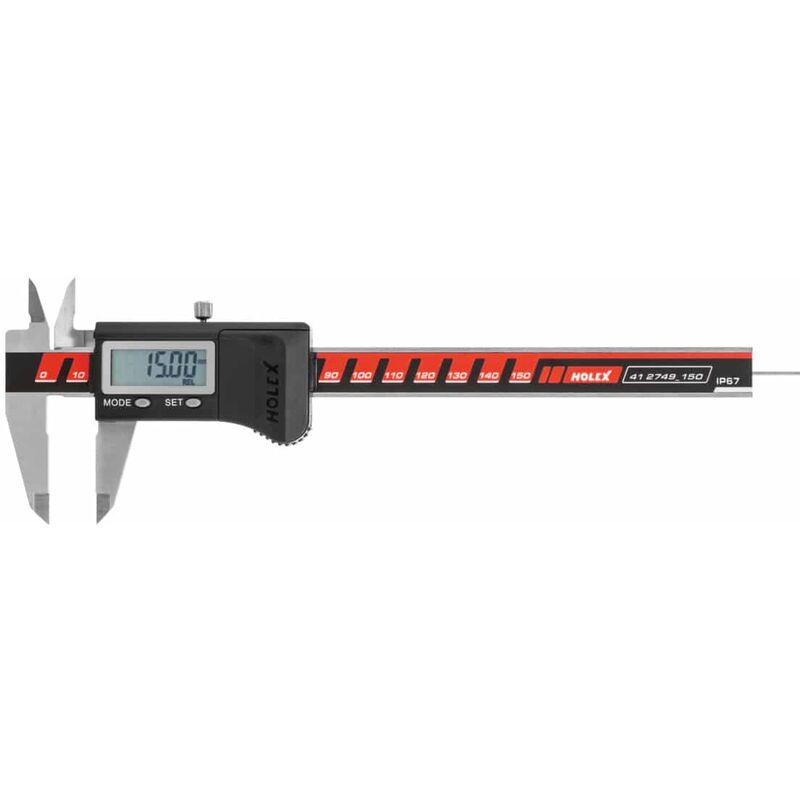 Display digitale allargato per facile lettura. Le superfici di contatto sono finemente lappate. Il calibro a corsoio è insensibile ad acqua e polvere. Se non utilizzato per 2 ore, il calibro a corsoio si spegne automaticamente. Custodia in materiale sintetico antiurto. Funzione: IP67: protezione contro l'immersione temporanea in acqua e contro la penetrazione di polvere (antipolvere), nonché protezione completa contro il contatto. Fornitura: Inclusa batteria n. art. 081560 Dim. CR2032. Dati tecnici Tutti i componenti temprate Imballaggio Custodia rigida Materiale Acciaio legato, INOX Metrologia digitale Tipo di prodotto Calibri a corsoio universali Lettura, mm 0,01 Lettura, Zoll 0,0005 n. art. batterie / accumulatori in dotazione 081560 CR2032 Grado di protezione IP IP 67 Numero di batterie contenute 1 Norma ISO 13385 Intervallo di misurazione, mm 0 - 150 Scostamento di misura E MPE, mm ±0,03 Taratura A1 Risoluzione mm / pollici Lunghezza dei becchi, mm 40 Spegnimento automatico sì