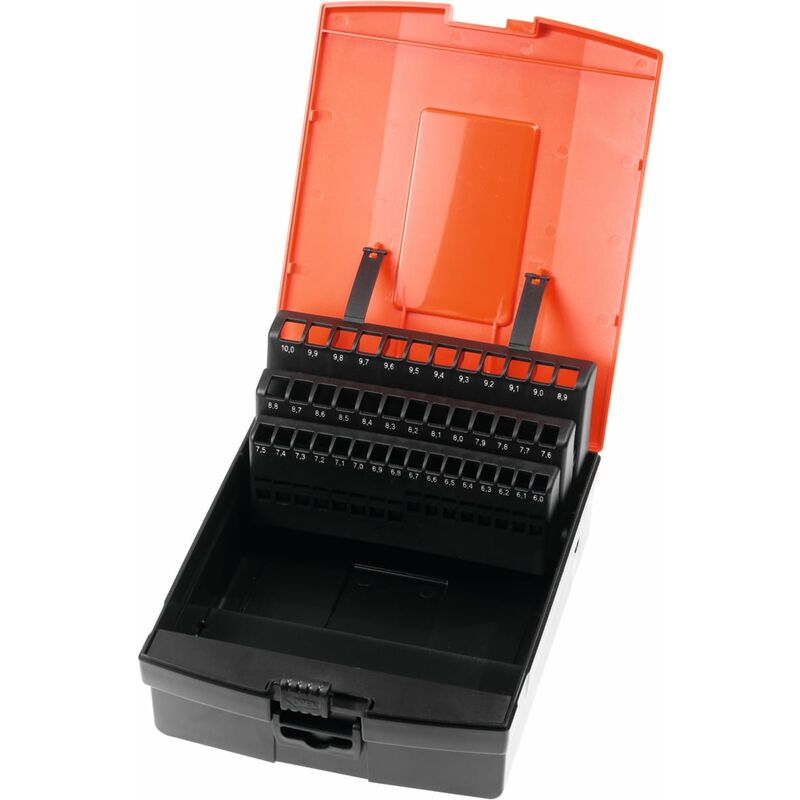 Da corredare con gli assortimenti di ricambio, adatte per punte elicoidali DIN 338. Dati tecnici Tipo di prodotto Cassetta vuota Per punte a misure crescenti di, mm 0,1 Per punte, mm 6 - 10