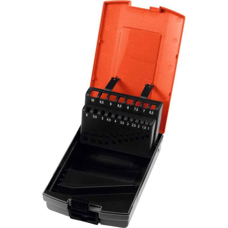 Da corredare con gli assortimenti di ricambio, adatte per punte elicoidali DIN 338. Dati tecnici Tipo di prodotto Cassetta vuota Per punte a misure crescenti di, mm 0,5 Per punte, mm 1 - 10