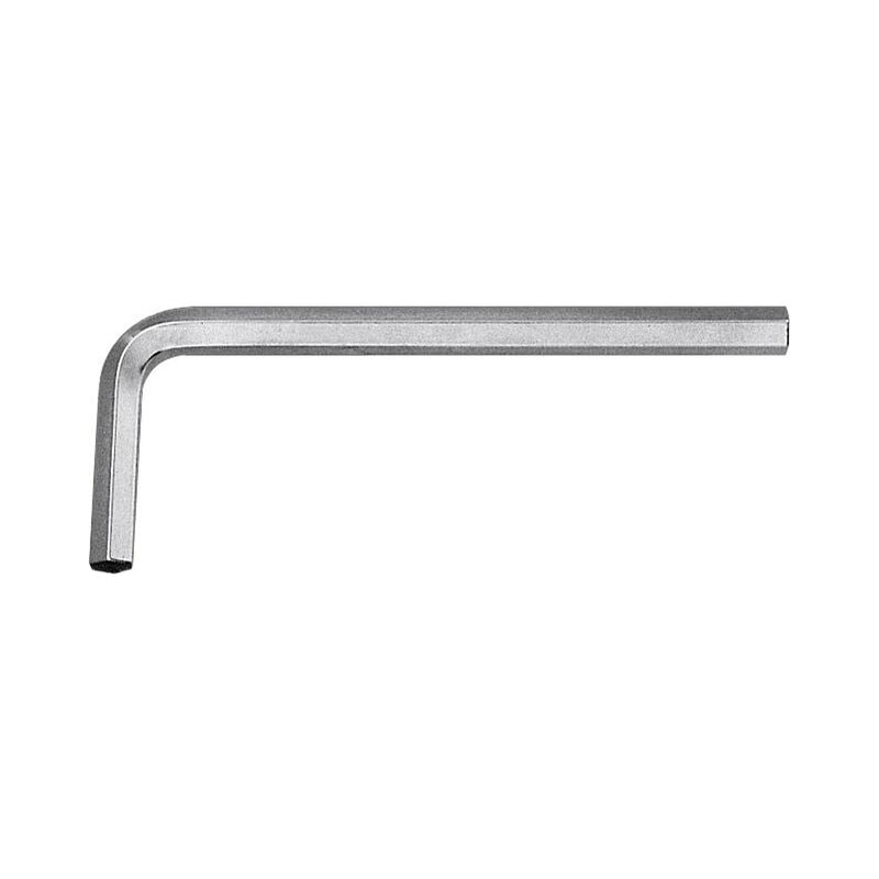 secondo DIN 911/DIN ISO 2936. Acciaio al cromo vanadio, estremità lavorate in piano e smussate. Nota: Chiavi maschio piegate HOLEX disponibili anche con dimensioni in pollici sul nostro eShop (n. art. 626039 e n. art. 626042). Dati tecnici Profilo di manovra Chiavi maschio esagonali Tipo di prodotto Giravite Superficie nichelate Lunghezze dei fianchi, mm 96×38 Esagono, mm 6