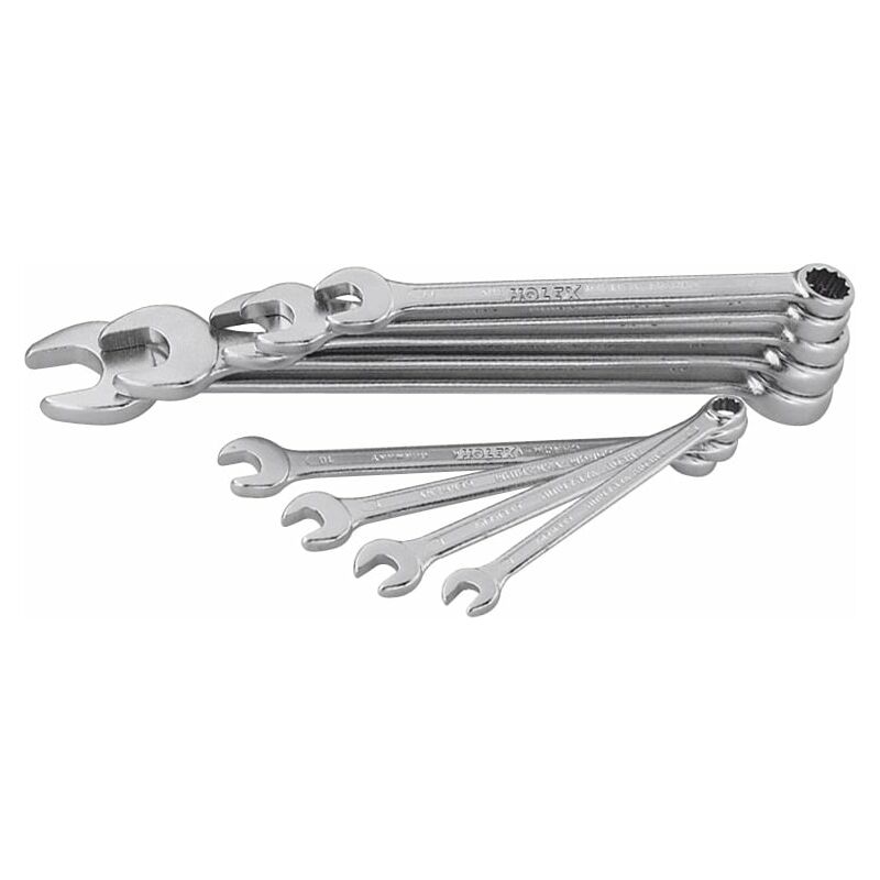 Forgiate. Con apertura a tolleranze strette. Corpo ovale. Norma: DIN 3113 A / ISO 3318 / ISO 7738 Materiale: Acciaio al cromo-vanadio, cromato. Fornitura: Cad. 1 chiave combinata n. art. 613600 / 613500 / 613800 / 613900 / 613950 / 613520 / 613970: Dim. 5,5;