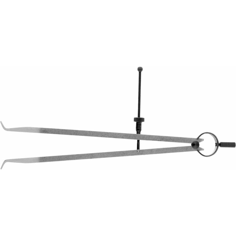 Con punte di contatto fisse. Forma robusta con aste lunghe, in acciaio per utensili. Punte e superfici di contatto rettificate e temprate. Vite passante con dado per la regolazione micrometrica. Tensione elastica costante grazie alla molla anulare. Dati tecnici Tipo di prodotto Compasso Apertura, mm 240 Sezione lati, mm 8×8 Misura del più piccolo eseguibile, mm 26 Lunghezza L, mm 290