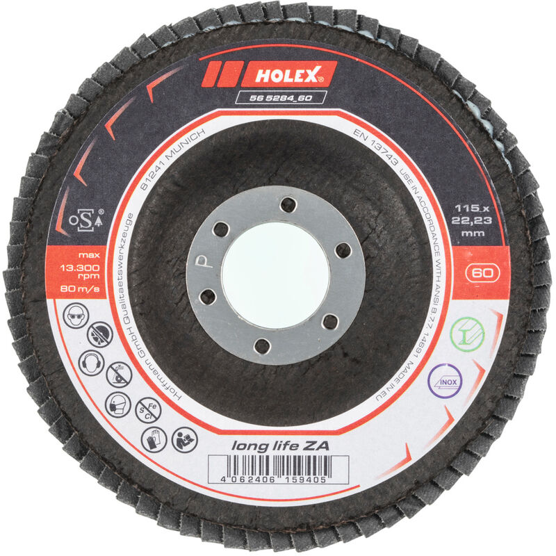 Acciaio Velocità periferica max. 80 m/s Tipo di prodotto Disco abrasivo lamellare Codice articolo 565284 60 EAN / GTIN 4062406159405