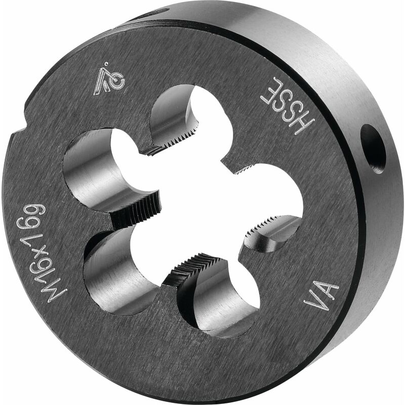 Forma chiusa preincisa con imbocco corretto su entrambi i lati. Imbocco a 2 spire. Lappate e nitrurate, angolo di spoglia superiore ca. 15°. Per acciai ad alta resistenza e inossidabili. Dati tecnici Tipo di filettatura MF Direzione di taglio destra Acciaio < 900 N/mm² m/min idoneo Materiale da taglio HSS E Acciaio < 1100 N/mm² m/min idoneo Tipo di prodotto Filiere a secco limitatamente adatto Acciaio < 750 N/mm² m/min idoneo INOX < 900 N/mm² m/min idoneo Norma EN 22568 Angolo di filetto Grad 60 Olio idoneo Acciaio < 500 N/mm² m/min idoneo Acciaio < 1400 N/mm² m/min limitatamente adatto INOX > 900 N/mm² m/min limitatamente adatto Misura del filetto M16×1 Classe di tolleranza DIN 13 6g Passo, mm 1 Altezza, mm 14 ⌀ Esterno, mm 45
