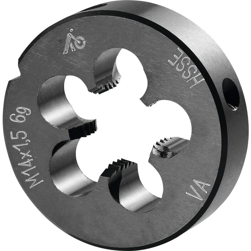 Forma chiusa preincisa con imbocco corretto su entrambi i lati. Imbocco a 2 spire. Lappate e nitrurate, angolo di spoglia superiore ca. 15°. Per acciai ad alta resistenza e inossidabili. Dati tecnici Tipo di filettatura MF Direzione di taglio destra Acciaio < 900 N/mm² m/min idoneo Materiale da taglio HSS E Acciaio < 1100 N/mm² m/min idoneo Tipo di prodotto Filiere a secco limitatamente adatto Acciaio < 750 N/mm² m/min idoneo INOX < 900 N/mm² m/min idoneo Norma EN 22568 Angolo di filetto Grad 60 Olio idoneo Acciaio < 500 N/mm² m/min idoneo Acciaio < 1400 N/mm² m/min limitatamente adatto INOX > 900 N/mm² m/min limitatamente adatto Misura del filetto M14×1,5 Classe di tolleranza DIN 13 6g Passo, mm 1,5 Altezza, mm 10 ⌀ Esterno, mm 38