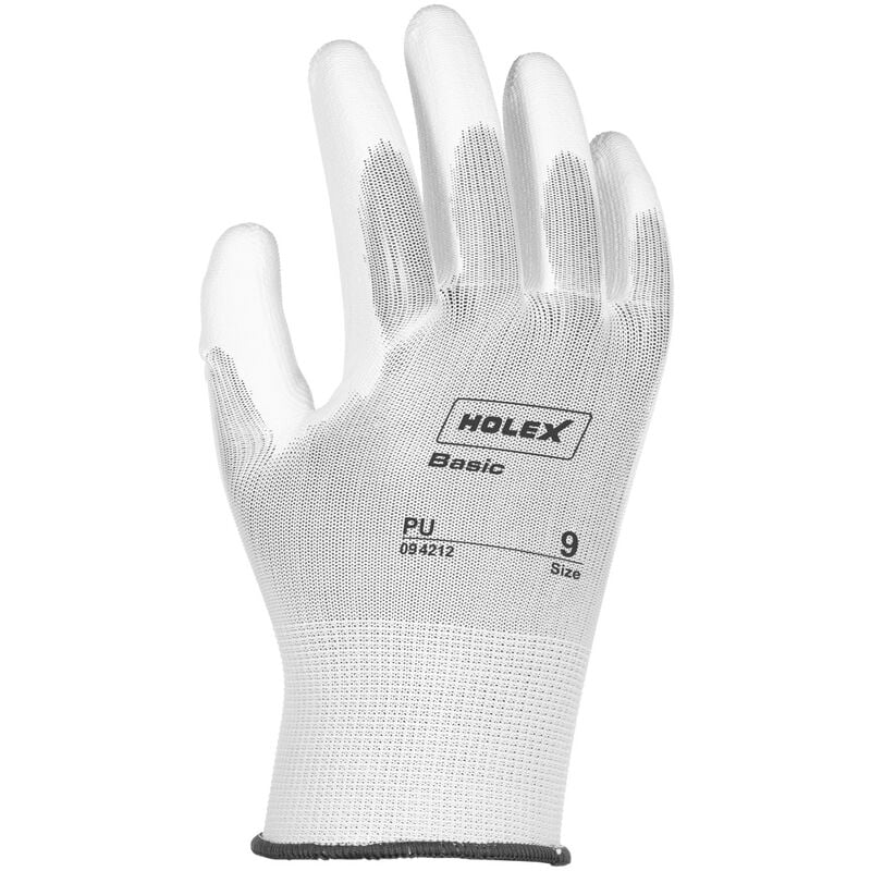 Guanto per montaggio Holex Basic. Particolarmente leggero e flessibile con resistente rivestimento in PU. Adatto per svolgere lavori in ambienti asciutti. Buona sensibilità tattile ed elevata sensibilità. Norma: EN 388;