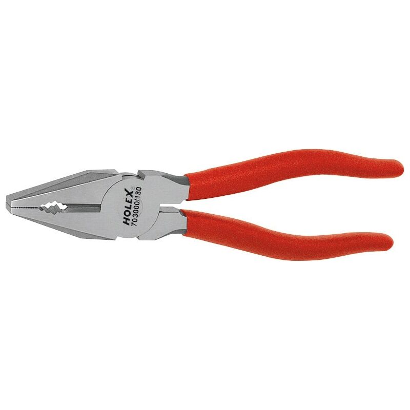Superfici di presa zigrinate. Taglienti temprati a induzione (circa 64 HRC), anche per filo armonico. Pinza in esecuzione lucida, manici rivestiti in plastica. Norma: DIN ISO 5746 Materiale: Acciaio al cromo-vanadio, forgiato. Dati tecnici Caratteristica ganasce dentatura interna Materiale Acciaio al cromo-vanadio Superficie lucido Norma DIN ISO 5746 Impugnatura rivestiti in plastica Antiscintilla no Processo di produzione Taglienti temprati a induzione (circa 64 HRC), corpo della pinza forgiato Tipo di prodotto Pinza multifunzione Lunghezza complessiva, mm 180 Valori di taglio: filo duro fino a ⌀, mm 2,2 Valori di taglio: filo armonico fino a ⌀, mm 1,8
